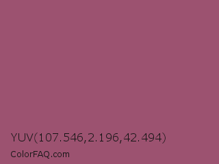 YUV 107.546,2.196,42.494 Color is a normal rose color and the nearest color is Rose Dust #9e5e6f. Hex code #9c5270 and RGB value is rgb(156,82,112). In RGB color space, this color is composed of 61% red, 32% green, 44% blue, In CMYK color space, this color is composed of 0% cyan, 47% magenta, 28% yellow , 39% black , In HSL color space, this color has a hue angle of 336° , 31% saturation and 47% lightness.