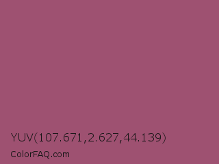 YUV 107.671,2.627,44.139 Color is a normal rose color and the nearest color is China Rose #a8516e. Hex code #9e5171 and RGB value is rgb(158,81,113). In RGB color space, this color is composed of 62% red, 32% green, 44% blue, In CMYK color space, this color is composed of 0% cyan, 49% magenta, 28% yellow , 38% black , In HSL color space, this color has a hue angle of 335° , 32% saturation and 47% lightness.