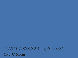 YUV 107.858,32.115,-34.078 Color is a normal blue color and the nearest color is San Marino #456cac. Hex code #4573ad and RGB value is rgb(69,115,173). In RGB color space, this color is composed of 27% red, 45% green, 68% blue, In CMYK color space, this color is composed of 60% cyan, 34% magenta, 0% yellow , 32% black , In HSL color space, this color has a hue angle of 213° , 43% saturation and 47% lightness.
