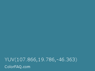 YUV 107.866,19.786,-46.363 Color is a normal blue color and the nearest color is Astral #327da0. Hex code #377f94 and RGB value is rgb(55,127,148). In RGB color space, this color is composed of 22% red, 50% green, 58% blue, In CMYK color space, this color is composed of 63% cyan, 14% magenta, 0% yellow , 42% black , In HSL color space, this color has a hue angle of 194° , 46% saturation and 40% lightness.
