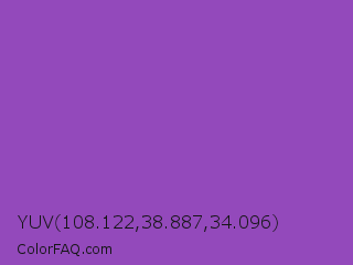 YUV 108.122,38.887,34.096 Color is a normal purple color and the nearest color is Purple Plum #9c51b6. Hex code #9349bb and RGB value is rgb(147,73,187). In RGB color space, this color is composed of 58% red, 29% green, 73% blue, In CMYK color space, this color is composed of 21% cyan, 61% magenta, 0% yellow , 27% black , In HSL color space, this color has a hue angle of 279° , 46% saturation and 51% lightness.