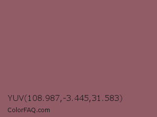 YUV 108.987,-3.445,31.583 Color is a normal red color and the nearest color is Mauve Taupe #915f6d. Hex code #915c66 and RGB value is rgb(145,92,102). In RGB color space, this color is composed of 57% red, 36% green, 40% blue, In CMYK color space, this color is composed of 0% cyan, 37% magenta, 30% yellow , 43% black , In HSL color space, this color has a hue angle of 349° , 22% saturation and 46% lightness.