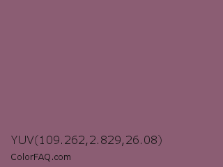 YUV 109.262,2.829,26.08 Color is a normal rose color and the nearest color is Mauve Taupe #915f6d. Hex code #8b5d73 and RGB value is rgb(139,93,115). In RGB color space, this color is composed of 55% red, 36% green, 45% blue, In CMYK color space, this color is composed of 0% cyan, 33% magenta, 17% yellow , 45% black , In HSL color space, this color has a hue angle of 331° , 20% saturation and 45% lightness.