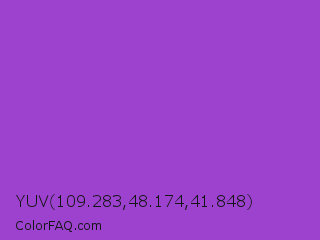 YUV 109.283,48.174,41.848 Color is a normal purple color and the nearest color is Dark Orchid #9932cc. Hex code #9d42cf and RGB value is rgb(157,66,207). In RGB color space, this color is composed of 62% red, 26% green, 81% blue, In CMYK color space, this color is composed of 24% cyan, 68% magenta, 0% yellow , 19% black , In HSL color space, this color has a hue angle of 279° , 59% saturation and 54% lightness.