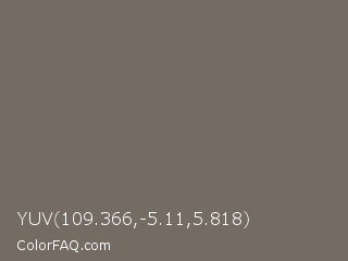 YUV 109.366,-5.11,5.818 Color is a normal orange color and the nearest color is Pablo #776f61. Hex code #746c63 and RGB value is rgb(116,108,99). In RGB color space, this color is composed of 45% red, 42% green, 39% blue, In CMYK color space, this color is composed of 0% cyan, 7% magenta, 15% yellow , 55% black , In HSL color space, this color has a hue angle of 32° , 8% saturation and 42% lightness.
