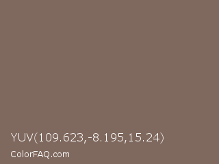 YUV 109.623,-8.195,15.24 Color is a normal orange color and the nearest color is Sandstone #796d62. Hex code #7f685d and RGB value is rgb(127,104,93). In RGB color space, this color is composed of 50% red, 41% green, 36% blue, In CMYK color space, this color is composed of 0% cyan, 18% magenta, 27% yellow , 50% black , In HSL color space, this color has a hue angle of 19° , 15% saturation and 43% lightness.