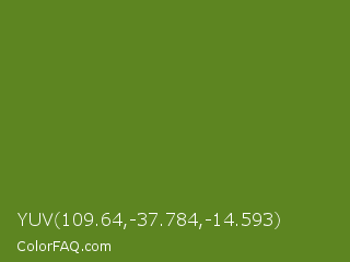 YUV 109.64,-37.784,-14.593 Color is a normal green color and the nearest color is Vida Loca #549019. Hex code #5d8521 and RGB value is rgb(93,133,33). In RGB color space, this color is composed of 36% red, 52% green, 13% blue, In CMYK color space, this color is composed of 30% cyan, 0% magenta, 75% yellow , 48% black , In HSL color space, this color has a hue angle of 84° , 60% saturation and 33% lightness.
