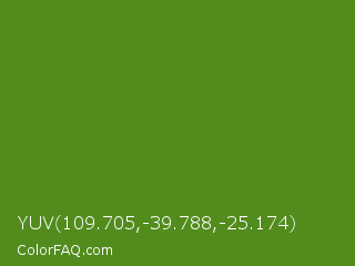 YUV 109.705,-39.788,-25.174 Color is a normal green color and the nearest color is Vida Loca #549019. Hex code #518c1d and RGB value is rgb(81,140,29). In RGB color space, this color is composed of 32% red, 55% green, 11% blue, In CMYK color space, this color is composed of 42% cyan, 0% magenta, 79% yellow , 45% black , In HSL color space, this color has a hue angle of 92° , 66% saturation and 33% lightness.