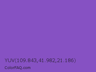 YUV 109.843,41.982,21.186 Color is a normal violet color and the nearest color is Fuchsia Blue #7a58c1. Hex code #8651c3 and RGB value is rgb(134,81,195). In RGB color space, this color is composed of 53% red, 32% green, 76% blue, In CMYK color space, this color is composed of 31% cyan, 58% magenta, 0% yellow , 24% black , In HSL color space, this color has a hue angle of 268° , 49% saturation and 54% lightness.