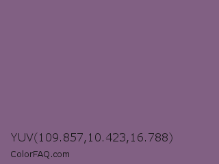 YUV 109.857,10.423,16.788 Color is a normal magenta color and the nearest color is Chinese Violet #856088. Hex code #816083 and RGB value is rgb(129,96,131). In RGB color space, this color is composed of 51% red, 38% green, 51% blue, In CMYK color space, this color is composed of 2% cyan, 27% magenta, 0% yellow , 49% black , In HSL color space, this color has a hue angle of 297° , 15% saturation and 45% lightness.