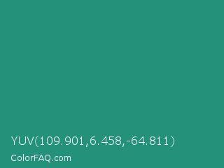 YUV 109.901,6.458,-64.811 Color is a normal cyan color and the nearest color is Lochinvar #2c8c84. Hex code #24917b and RGB value is rgb(36,145,123). In RGB color space, this color is composed of 14% red, 57% green, 48% blue, In CMYK color space, this color is composed of 75% cyan, 0% magenta, 15% yellow , 43% black , In HSL color space, this color has a hue angle of 168° , 60% saturation and 35% lightness.