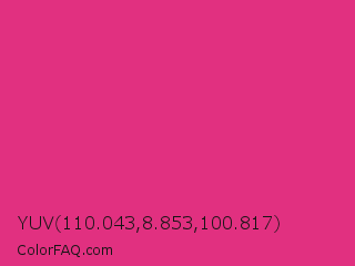 YUV 110.043,8.853,100.817 Color is a normal rose color and the nearest color is Cerise #da3287. Hex code #e13080 and RGB value is rgb(225,48,128). In RGB color space, this color is composed of 88% red, 19% green, 50% blue, In CMYK color space, this color is composed of 0% cyan, 79% magenta, 43% yellow , 12% black , In HSL color space, this color has a hue angle of 333° , 75% saturation and 54% lightness.