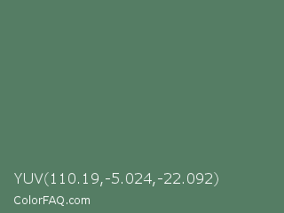 YUV 110.19,-5.024,-22.092 Color is a normal green color and the nearest color is Como #517c66. Hex code #557d64 and RGB value is rgb(85,125,100). In RGB color space, this color is composed of 33% red, 49% green, 39% blue, In CMYK color space, this color is composed of 32% cyan, 0% magenta, 20% yellow , 51% black , In HSL color space, this color has a hue angle of 143° , 19% saturation and 41% lightness.