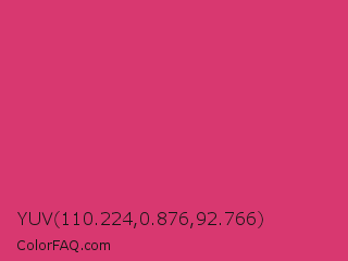 YUV 110.224,0.876,92.766 Color is a normal rose color and the nearest color is Telemagenta #cf3476. Hex code #d83870 and RGB value is rgb(216,56,112). In RGB color space, this color is composed of 85% red, 22% green, 44% blue, In CMYK color space, this color is composed of 0% cyan, 74% magenta, 48% yellow , 15% black , In HSL color space, this color has a hue angle of 339° , 67% saturation and 53% lightness.