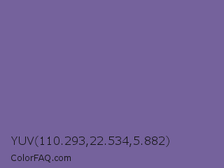 YUV 110.293,22.534,5.882 Color is a normal indigo color and the nearest color is Kimberly #736c9f. Hex code #75629c and RGB value is rgb(117,98,156). In RGB color space, this color is composed of 46% red, 38% green, 61% blue, In CMYK color space, this color is composed of 25% cyan, 37% magenta, 0% yellow , 39% black , In HSL color space, this color has a hue angle of 260° , 23% saturation and 50% lightness.