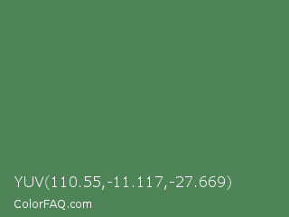 YUV 110.55,-11.117,-27.669 Color is a normal green color and the nearest color is Middle Green #4d8c57. Hex code #4f8358 and RGB value is rgb(79,131,88). In RGB color space, this color is composed of 31% red, 51% green, 35% blue, In CMYK color space, this color is composed of 40% cyan, 0% magenta, 33% yellow , 49% black , In HSL color space, this color has a hue angle of 130° , 25% saturation and 41% lightness.