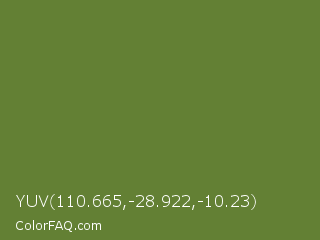 YUV 110.665,-28.922,-10.23 Color is a normal green color and the nearest color is Maximum Green #5e8c31. Hex code #638034 and RGB value is rgb(99,128,52). In RGB color space, this color is composed of 39% red, 50% green, 20% blue, In CMYK color space, this color is composed of 23% cyan, 0% magenta, 59% yellow , 50% black , In HSL color space, this color has a hue angle of 83° , 42% saturation and 35% lightness.