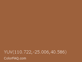 YUV 110.722,-25.006,40.586 Color is a normal orange color and the nearest color is Sepia Skin #9e5b40. Hex code #9d613c and RGB value is rgb(157,97,60). In RGB color space, this color is composed of 62% red, 38% green, 24% blue, In CMYK color space, this color is composed of 0% cyan, 38% magenta, 62% yellow , 38% black , In HSL color space, this color has a hue angle of 23° , 45% saturation and 43% lightness.