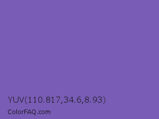 YUV 110.817,34.6,8.93 Color is a normal indigo color and the nearest color is Fuchsia Blue #7a58c1. Hex code #795cb5 and RGB value is rgb(121,92,181). In RGB color space, this color is composed of 47% red, 36% green, 71% blue, In CMYK color space, this color is composed of 33% cyan, 49% magenta, 0% yellow , 29% black , In HSL color space, this color has a hue angle of 260° , 38% saturation and 54% lightness.
