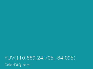YUV 110.889,24.705,-84.095 Color is a normal cyan color and the nearest color is Viridian Green #009698. Hex code #0f96a1 and RGB value is rgb(15,150,161). In RGB color space, this color is composed of 6% red, 59% green, 63% blue, In CMYK color space, this color is composed of 91% cyan, 7% magenta, 0% yellow , 37% black , In HSL color space, this color has a hue angle of 185° , 83% saturation and 35% lightness.
