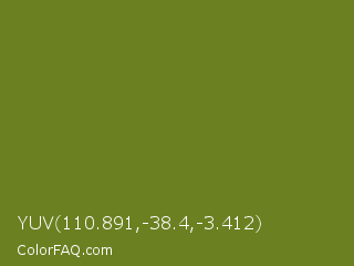 YUV 110.891,-38.4,-3.412 Color is a normal lime color and the nearest color is Pacifika #778120. Hex code #6b8021 and RGB value is rgb(107,128,33). In RGB color space, this color is composed of 42% red, 50% green, 13% blue, In CMYK color space, this color is composed of 16% cyan, 0% magenta, 74% yellow , 50% black , In HSL color space, this color has a hue angle of 73° , 59% saturation and 32% lightness.