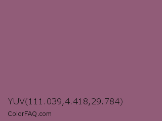 YUV 111.039,4.418,29.784 Color is a normal rose color and the nearest color is Antique Fuchsia #915c83. Hex code #915c78 and RGB value is rgb(145,92,120). In RGB color space, this color is composed of 57% red, 36% green, 47% blue, In CMYK color space, this color is composed of 0% cyan, 37% magenta, 17% yellow , 43% black , In HSL color space, this color has a hue angle of 328° , 22% saturation and 46% lightness.