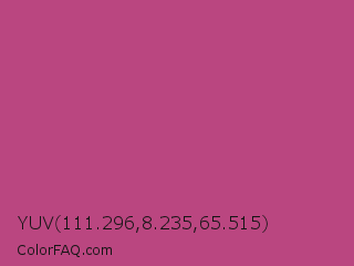 YUV 111.296,8.235,65.515 Color is a normal rose color and the nearest color is Mystic Maroon #ad4379. Hex code #ba4680 and RGB value is rgb(186,70,128). In RGB color space, this color is composed of 73% red, 27% green, 50% blue, In CMYK color space, this color is composed of 0% cyan, 62% magenta, 31% yellow , 27% black , In HSL color space, this color has a hue angle of 330° , 46% saturation and 50% lightness.