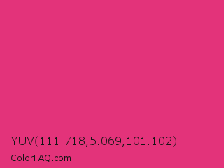 YUV 111.718,5.069,101.102 Color is a normal rose color and the nearest color is Cerise Pink #ec3b83. Hex code #e3337a and RGB value is rgb(227,51,122). In RGB color space, this color is composed of 89% red, 20% green, 48% blue, In CMYK color space, this color is composed of 0% cyan, 78% magenta, 46% yellow , 11% black , In HSL color space, this color has a hue angle of 336° , 76% saturation and 55% lightness.