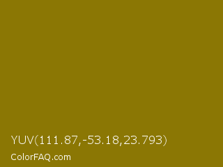 YUV 111.87,-53.18,23.793 Color is a dark yellow color and the nearest color is Corn Harvest #8b6b0b. Hex code #8b7704 and RGB value is rgb(139,119,4). In RGB color space, this color is composed of 55% red, 47% green, 2% blue, In CMYK color space, this color is composed of 0% cyan, 14% magenta, 97% yellow , 45% black , In HSL color space, this color has a hue angle of 51° , 94% saturation and 28% lightness.