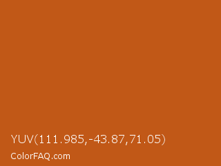 YUV 111.985,-43.87,71.05 Color is a normal orange color and the nearest color is Orange Roughy #c45719. Hex code #c15817 and RGB value is rgb(193,88,23). In RGB color space, this color is composed of 76% red, 35% green, 9% blue, In CMYK color space, this color is composed of 0% cyan, 54% magenta, 88% yellow , 24% black , In HSL color space, this color has a hue angle of 23° , 79% saturation and 42% lightness.