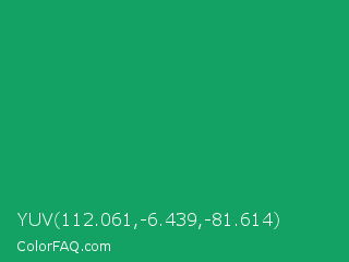 YUV 112.061,-6.439,-81.614 Color is a normal green color and the nearest color is Green Haze #01a368. Hex code #13a263 and RGB value is rgb(19,162,99). In RGB color space, this color is composed of 7% red, 64% green, 39% blue, In CMYK color space, this color is composed of 88% cyan, 0% magenta, 39% yellow , 36% black , In HSL color space, this color has a hue angle of 154° , 79% saturation and 35% lightness.