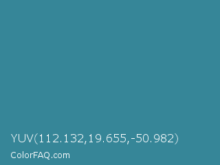 YUV 112.132,19.655,-50.982 Color is a normal cyan color and the nearest color is Astral #327da0. Hex code #368698 and RGB value is rgb(54,134,152). In RGB color space, this color is composed of 21% red, 53% green, 60% blue, In CMYK color space, this color is composed of 64% cyan, 12% magenta, 0% yellow , 40% black , In HSL color space, this color has a hue angle of 191° , 48% saturation and 40% lightness.