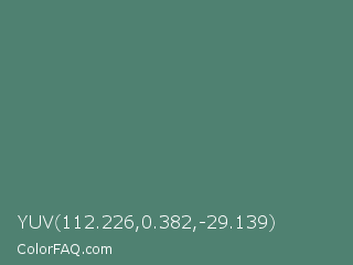 YUV 112.226,0.382,-29.139 Color is a normal green color and the nearest color is Cutty Sark #507672. Hex code #4f8171 and RGB value is rgb(79,129,113). In RGB color space, this color is composed of 31% red, 51% green, 44% blue, In CMYK color space, this color is composed of 39% cyan, 0% magenta, 12% yellow , 49% black , In HSL color space, this color has a hue angle of 161° , 24% saturation and 41% lightness.