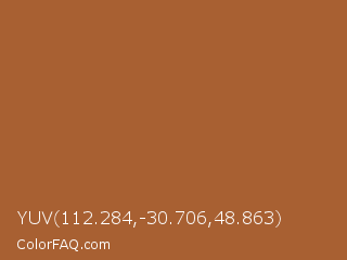YUV 112.284,-30.706,48.863 Color is a normal orange color and the nearest color is Paarl #a65529. Hex code #a86032 and RGB value is rgb(168,96,50). In RGB color space, this color is composed of 66% red, 38% green, 20% blue, In CMYK color space, this color is composed of 0% cyan, 43% magenta, 70% yellow , 34% black , In HSL color space, this color has a hue angle of 23° , 54% saturation and 43% lightness.