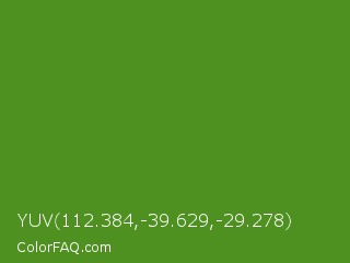 YUV 112.384,-39.629,-29.278 Color is a normal green color and the nearest color is Vida Loca #549019. Hex code #4f9120 and RGB value is rgb(79,145,32). In RGB color space, this color is composed of 31% red, 57% green, 13% blue, In CMYK color space, this color is composed of 46% cyan, 0% magenta, 78% yellow , 43% black , In HSL color space, this color has a hue angle of 95° , 64% saturation and 35% lightness.