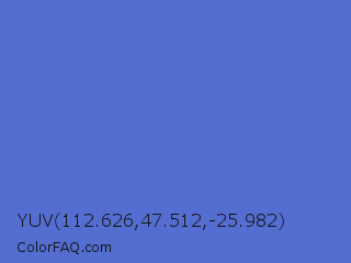 YUV 112.626,47.512,-25.982 Color is a normal blue color and the nearest color is Indigo #4f69c6. Hex code #536dd1 and RGB value is rgb(83,109,209). In RGB color space, this color is composed of 33% red, 43% green, 82% blue, In CMYK color space, this color is composed of 60% cyan, 48% magenta, 0% yellow , 18% black , In HSL color space, this color has a hue angle of 228° , 58% saturation and 57% lightness.