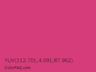 YUV 112.701,4.091,87.962 Color is a normal rose color and the nearest color is Magenta Pantone #d0417e. Hex code #d53c79 and RGB value is rgb(213,60,121). In RGB color space, this color is composed of 84% red, 24% green, 47% blue, In CMYK color space, this color is composed of 0% cyan, 72% magenta, 43% yellow , 16% black , In HSL color space, this color has a hue angle of 336° , 65% saturation and 54% lightness.