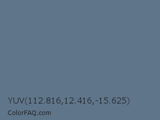 YUV 112.816,12.416,-15.625 Color is a normal blue color and the nearest color is Pale Sky #6e7783. Hex code #5f758a and RGB value is rgb(95,117,138). In RGB color space, this color is composed of 37% red, 46% green, 54% blue, In CMYK color space, this color is composed of 31% cyan, 15% magenta, 0% yellow , 46% black , In HSL color space, this color has a hue angle of 209° , 18% saturation and 46% lightness.