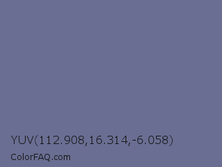 YUV 112.908,16.314,-6.058 Color is a normal blue color and the nearest color is Dark Blue Gray #666699. Hex code #6a6e92 and RGB value is rgb(106,110,146). In RGB color space, this color is composed of 42% red, 43% green, 57% blue, In CMYK color space, this color is composed of 27% cyan, 25% magenta, 0% yellow , 43% black , In HSL color space, this color has a hue angle of 234° , 16% saturation and 49% lightness.