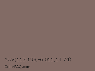 YUV 113.193,-6.011,14.74 Color is a normal red color and the nearest color is Sand Dune #826f65. Hex code #826b65 and RGB value is rgb(130,107,101). In RGB color space, this color is composed of 51% red, 42% green, 40% blue, In CMYK color space, this color is composed of 0% cyan, 18% magenta, 22% yellow , 49% black , In HSL color space, this color has a hue angle of 12° , 13% saturation and 45% lightness.