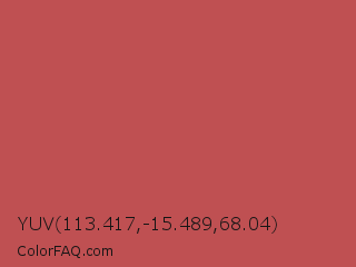 YUV 113.417,-15.489,68.04 Color is a normal red color and the nearest color is Bittersweet Shimmer #bf4f51. Hex code #bf5052 and RGB value is rgb(191,80,82). In RGB color space, this color is composed of 75% red, 31% green, 32% blue, In CMYK color space, this color is composed of 0% cyan, 58% magenta, 57% yellow , 25% black , In HSL color space, this color has a hue angle of 359° , 46% saturation and 53% lightness.