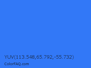 YUV 113.548,65.792,-55.732 Color is a normal blue color and the nearest color is Blue Crayola #1f75fe. Hex code #3278f7 and RGB value is rgb(50,120,247). In RGB color space, this color is composed of 20% red, 47% green, 97% blue, In CMYK color space, this color is composed of 80% cyan, 51% magenta, 0% yellow , 3% black , In HSL color space, this color has a hue angle of 219° , 92% saturation and 58% lightness.