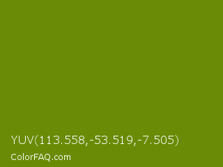 YUV 113.558,-53.519,-7.505 Color is a dark lime color and the nearest color is Limeade #6f9d02. Hex code #698b05 and RGB value is rgb(105,139,5). In RGB color space, this color is composed of 41% red, 55% green, 2% blue, In CMYK color space, this color is composed of 24% cyan, 0% magenta, 96% yellow , 45% black , In HSL color space, this color has a hue angle of 75° , 93% saturation and 28% lightness.