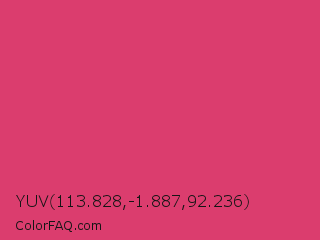 YUV 113.828,-1.887,92.236 Color is a normal rose color and the nearest color is Cabaret #d94972. Hex code #db3d6e and RGB value is rgb(219,61,110). In RGB color space, this color is composed of 86% red, 24% green, 43% blue, In CMYK color space, this color is composed of 0% cyan, 72% magenta, 50% yellow , 14% black , In HSL color space, this color has a hue angle of 341° , 69% saturation and 55% lightness.