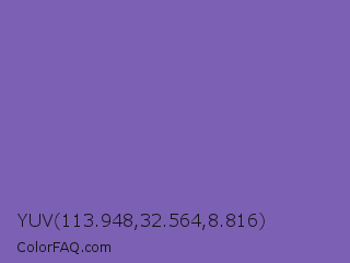 YUV 113.948,32.564,8.816 Color is a normal indigo color and the nearest color is Deluge #7563a8. Hex code #7c60b4 and RGB value is rgb(124,96,180). In RGB color space, this color is composed of 49% red, 38% green, 71% blue, In CMYK color space, this color is composed of 31% cyan, 47% magenta, 0% yellow , 29% black , In HSL color space, this color has a hue angle of 260° , 36% saturation and 54% lightness.