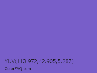 YUV 113.972,42.905,5.287 Color is a normal indigo color and the nearest color is Blue Marguerite #7666c6. Hex code #785ec9 and RGB value is rgb(120,94,201). In RGB color space, this color is composed of 47% red, 37% green, 79% blue, In CMYK color space, this color is composed of 40% cyan, 53% magenta, 0% yellow , 21% black , In HSL color space, this color has a hue angle of 255° , 50% saturation and 58% lightness.
