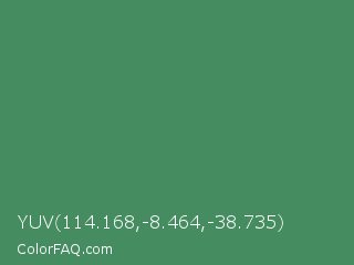 YUV 114.168,-8.464,-38.735 Color is a normal green color and the nearest color is Middle Green #4d8c57. Hex code #468c61 and RGB value is rgb(70,140,97). In RGB color space, this color is composed of 27% red, 55% green, 38% blue, In CMYK color space, this color is composed of 50% cyan, 0% magenta, 31% yellow , 45% black , In HSL color space, this color has a hue angle of 143° , 33% saturation and 41% lightness.