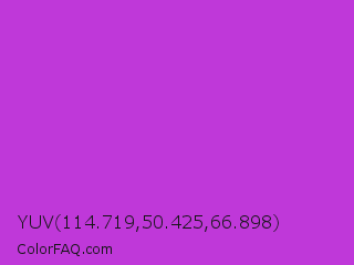 YUV 114.719,50.425,66.898 Color is a normal purple color and the nearest color is Steel Pink #cc33cc. Hex code #bf38d9 and RGB value is rgb(191,56,217). In RGB color space, this color is composed of 75% red, 22% green, 85% blue, In CMYK color space, this color is composed of 12% cyan, 74% magenta, 0% yellow , 15% black , In HSL color space, this color has a hue angle of 290° , 68% saturation and 54% lightness.
