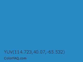 YUV 114.723,40.07,-65.532 Color is a normal blue color and the nearest color is Cyan Cornflower Blue #188bc2. Hex code #2889c4 and RGB value is rgb(40,137,196). In RGB color space, this color is composed of 16% red, 54% green, 77% blue, In CMYK color space, this color is composed of 80% cyan, 30% magenta, 0% yellow , 23% black , In HSL color space, this color has a hue angle of 203° , 66% saturation and 46% lightness.