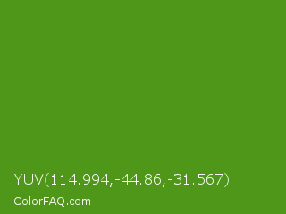 YUV 114.994,-44.86,-31.567 Color is a normal green color and the nearest color is Vida Loca #549019. Hex code #4f9718 and RGB value is rgb(79,151,24). In RGB color space, this color is composed of 31% red, 59% green, 9% blue, In CMYK color space, this color is composed of 48% cyan, 0% magenta, 84% yellow , 41% black , In HSL color space, this color has a hue angle of 94° , 73% saturation and 34% lightness.